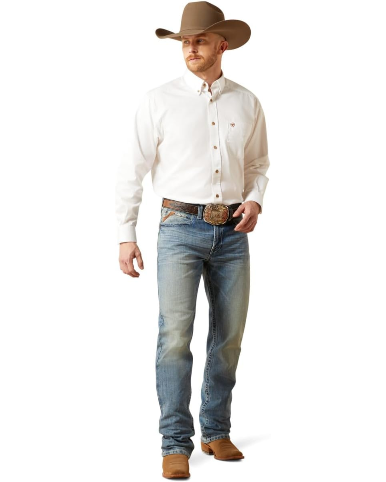 - WESTERN CASUAL SHIRT: A western look that will please any cowboy, this easy-wearing Ariat long-sleeve shirt for men boasts durable twill cotton fabric and double-needle topstitch for added reinforcement.