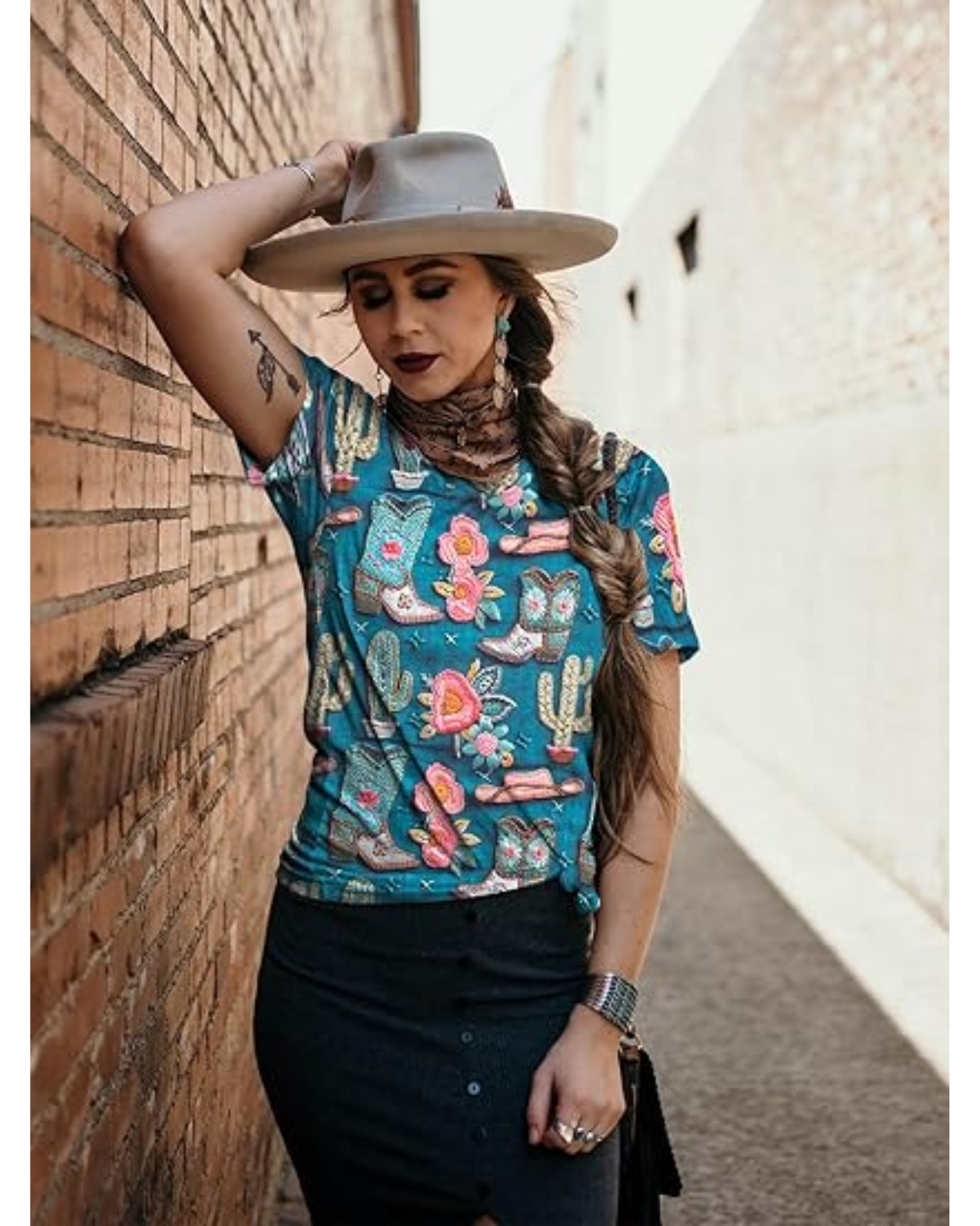 • Features: Cowgirl T-Shirt, Rodeo 3d Digital Printing, Western Cactus Graphic, crewneck, women’s vintage T-shirt top, short sleeves, showcasing your beautiful collarbone and feminine temperament.