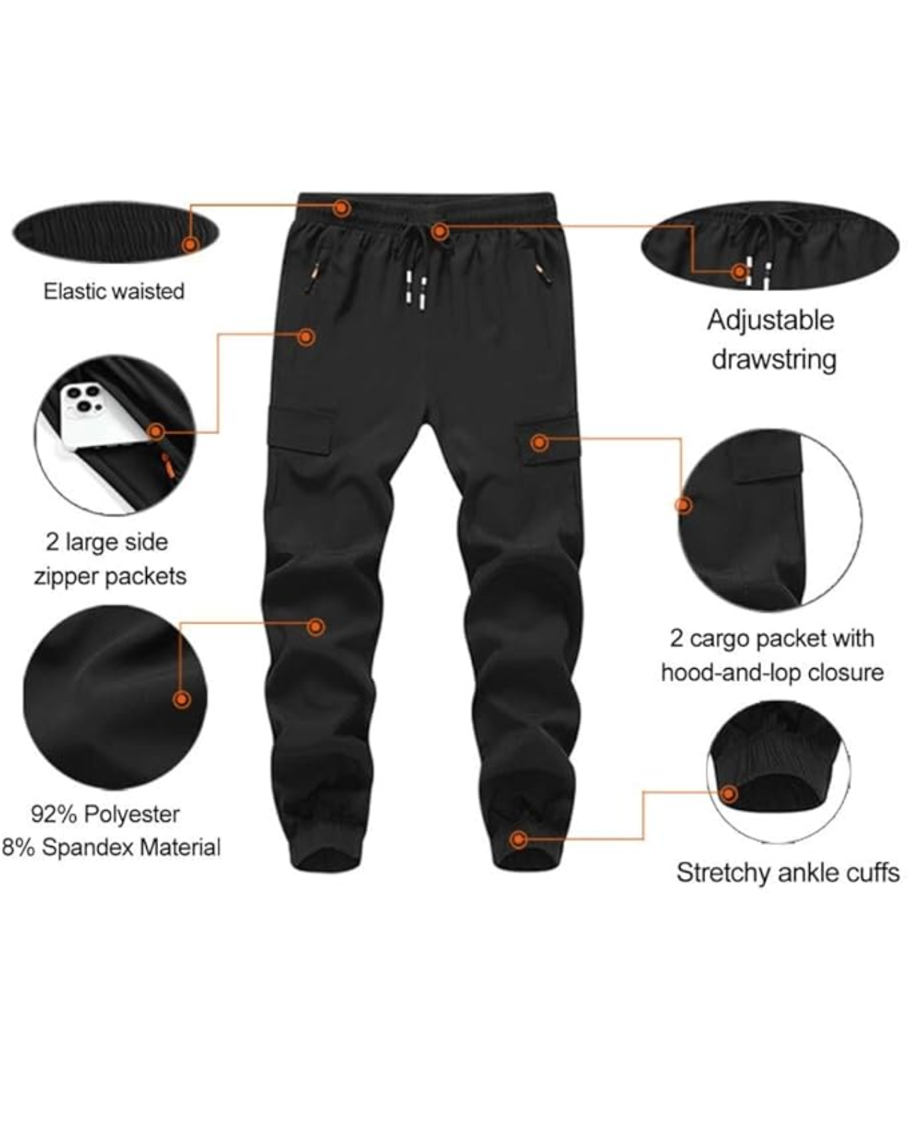 - Boys Cargo Pants:Boys durable cargo pant features multi pockets including 2 front pockets, 2 side Zipper pockets No problem to carry your phone or any other small items.
