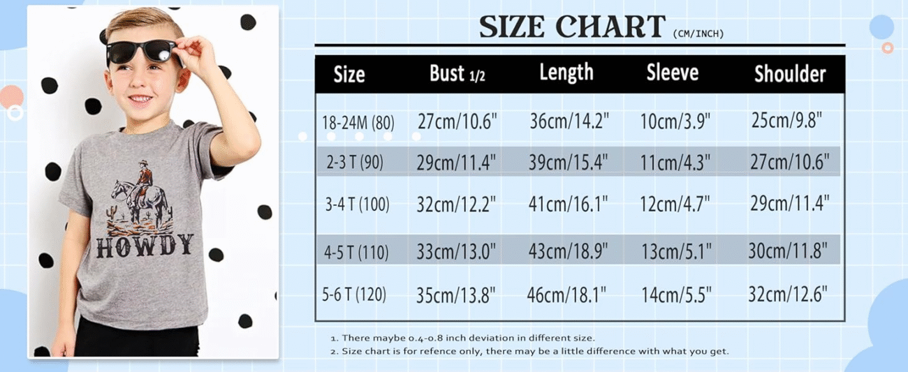 • 🐎Package included: 1 * Toddler howdy western graphic shirt baby boy vintage cowboy summer tees. Machine washable is ok. Please refer the size chart carefully before ordering.